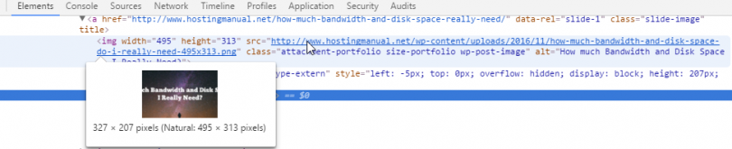 In Google Chrome right-click on the image and in the popup click Inspect Element. You will see something like this: